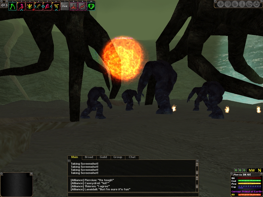 Then, the 4 elements appeared. First came the Earth elementals. The large one, accompanied by four smaller ones.