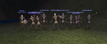 On the signal of Wrath's whistle, the naked Avatars took off! They all headed towards the first tree, which is surrounded by Finlaiths. They soon turned back on course. Woops! :p
